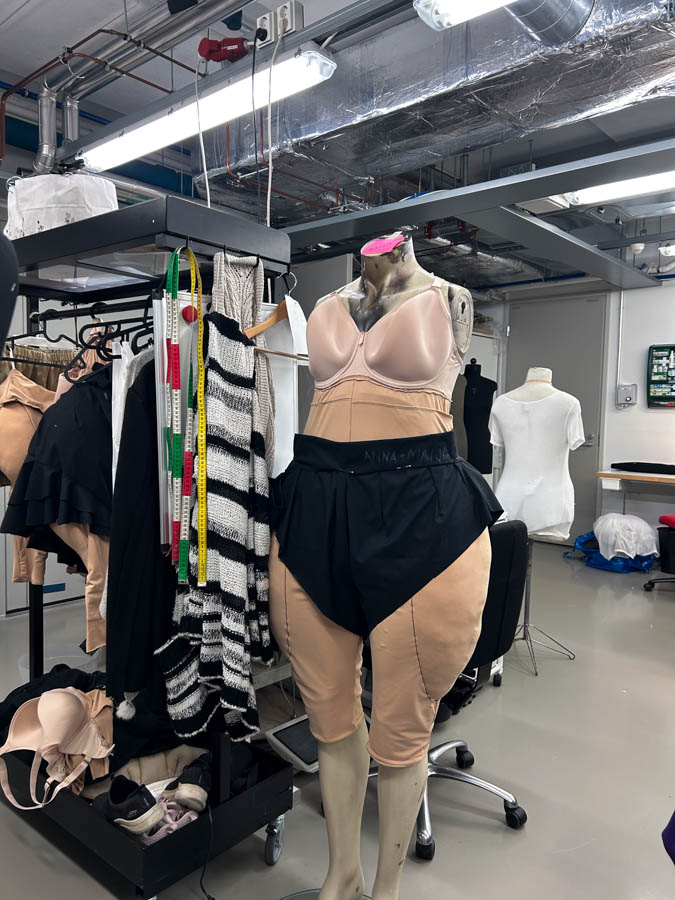 “Tulevaan Mahagonny-oopperaan tehdään kaikki vaatteet. Oopperassa on iloluontoisia naisia, joille tehdään kurvikuningattarien kropat. Karikatyyriasussa on mukavampi esiintyä, varsinkin kun näyttämöllä on oopperalaulajia, eikä näyttelijöitä”, Lampinen kertoo.
