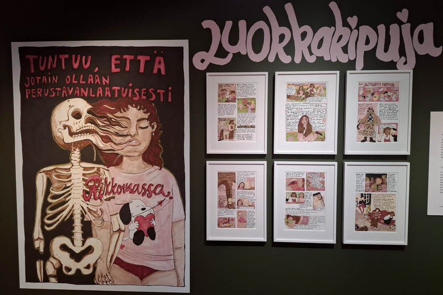 Tamperelais-imatralaisen sarjakuvapiirtäjän Riina Tanskasen Tympeät tytöt – Luokkakipuja -näyttely tarkastelee ja kritisoi yhteiskunnallista epätasa-arvoa sekä tyttöyden kipukohtia hyödyntäen feminismin popularisoitumisesta tuttuja tyylejä.